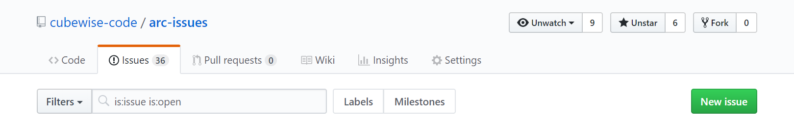To create a new issue, you will have to create a GitHub account (It is very quick and free). Once you are logged in to Github, you should be able to see the green New issue button on the top left