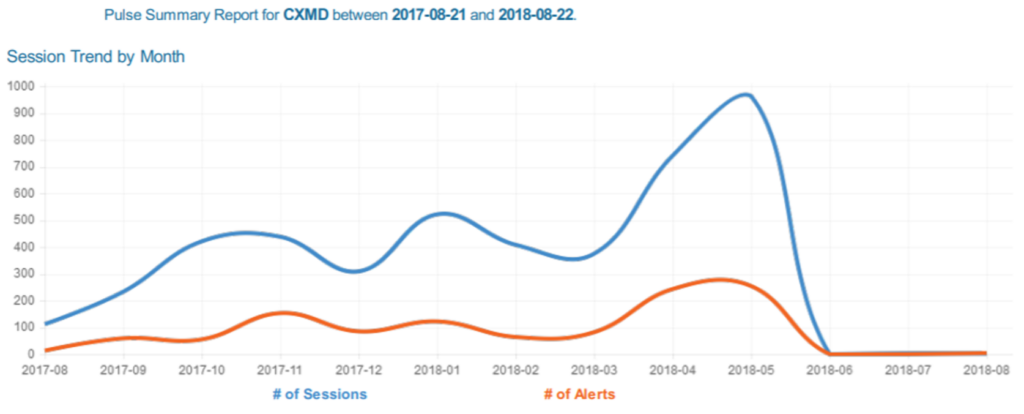 The first graph in the System Summary report displays the correlation between number of sessions vs the number of triggered alerts: